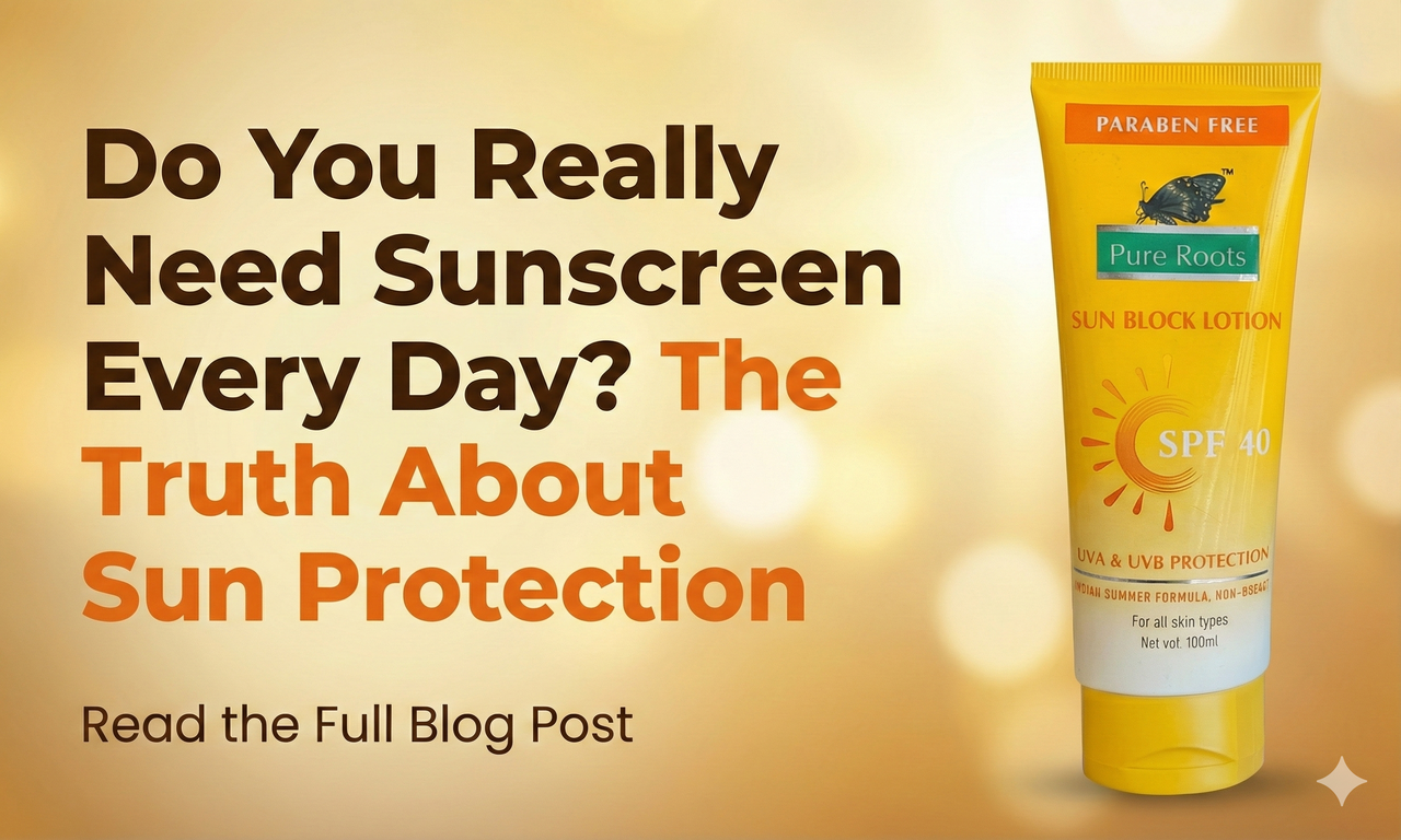Let’s break down why daily sunscreen use matters, how it protects your skin, and why Pure Roots Herbals Sun Block Lotion SPF 40 should be a part of your everyday routine.