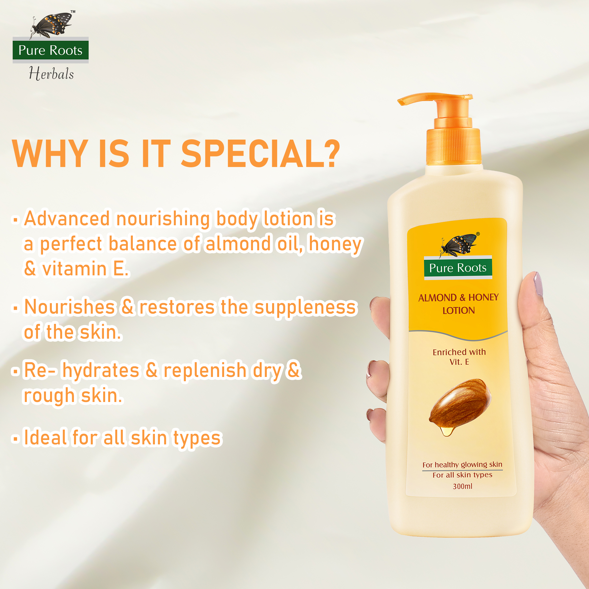 Pure Roots Almond & Honey Body Lotion: Ultimate Hydration for Glowing Skin