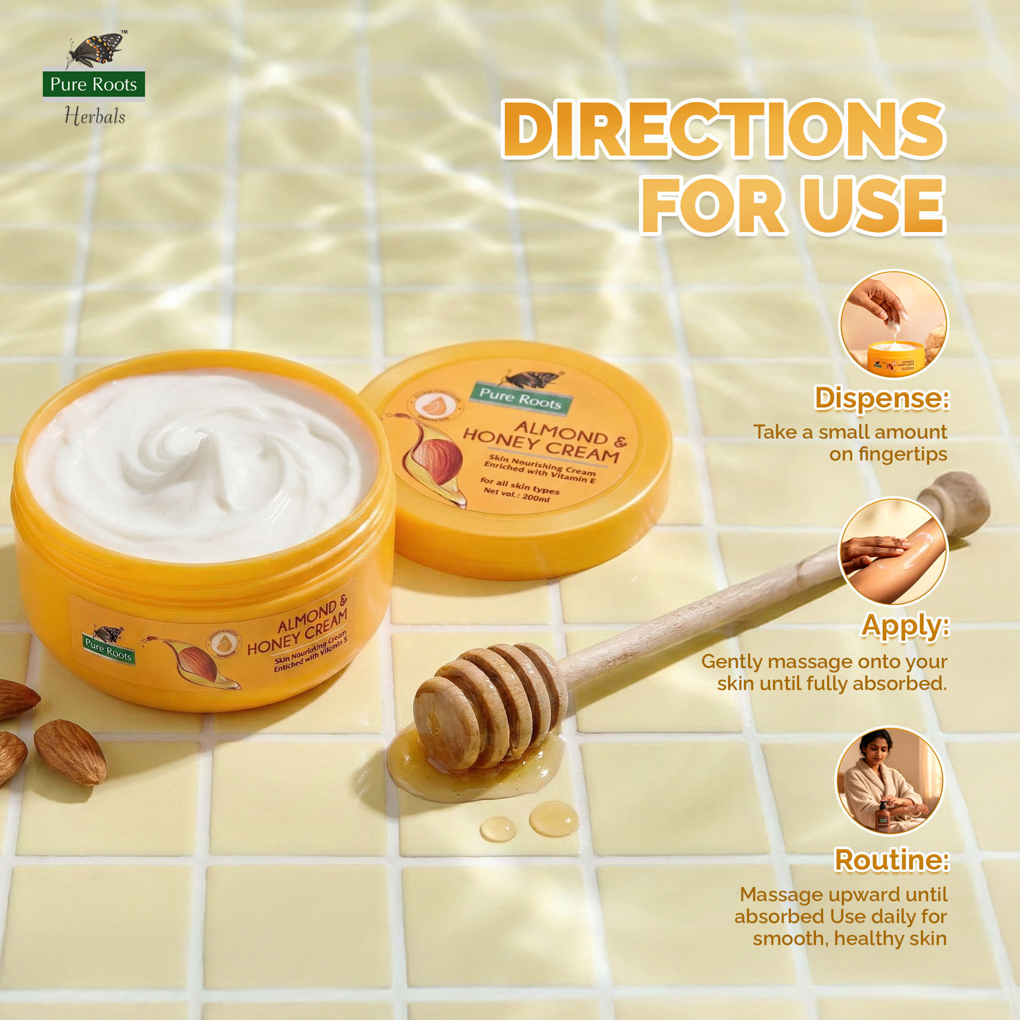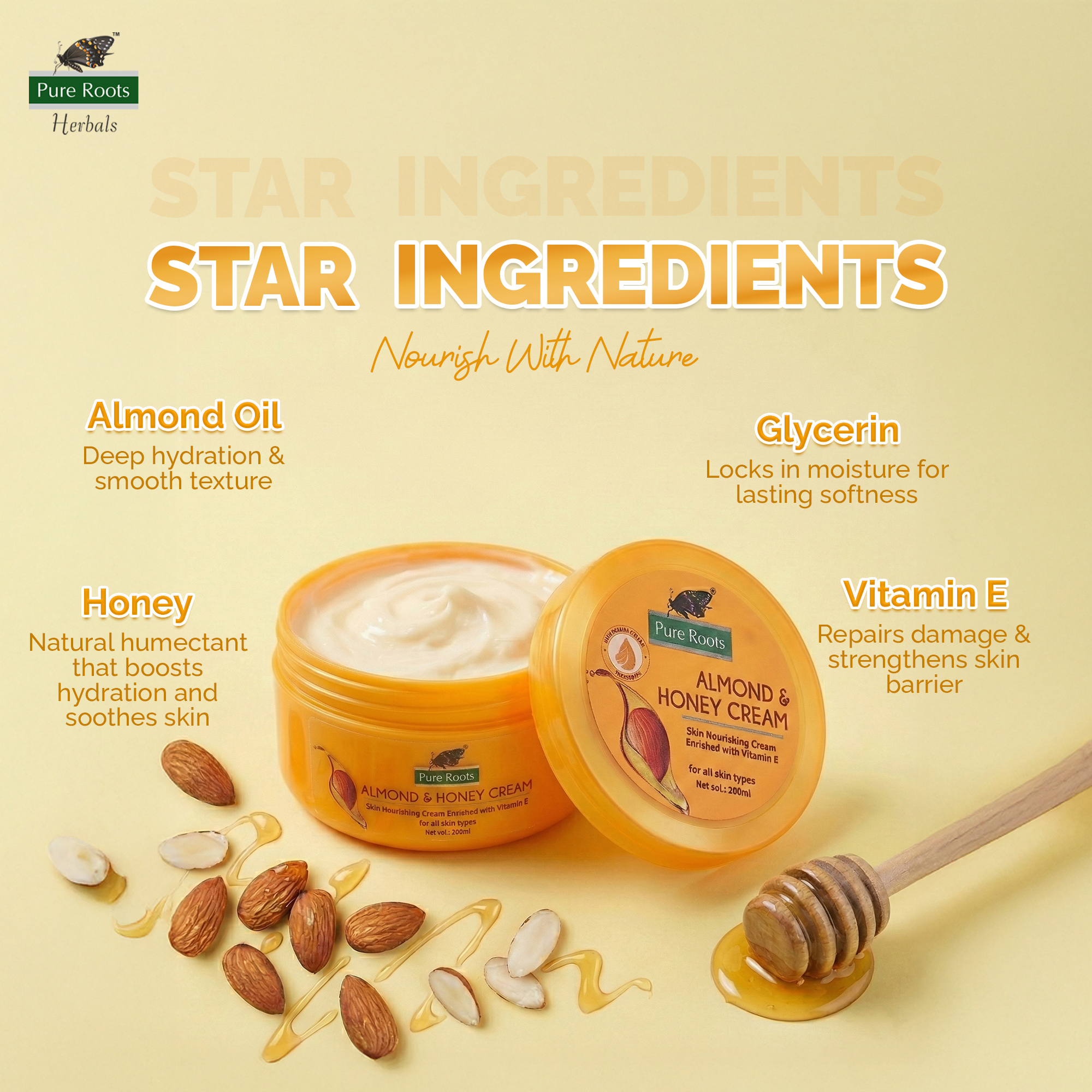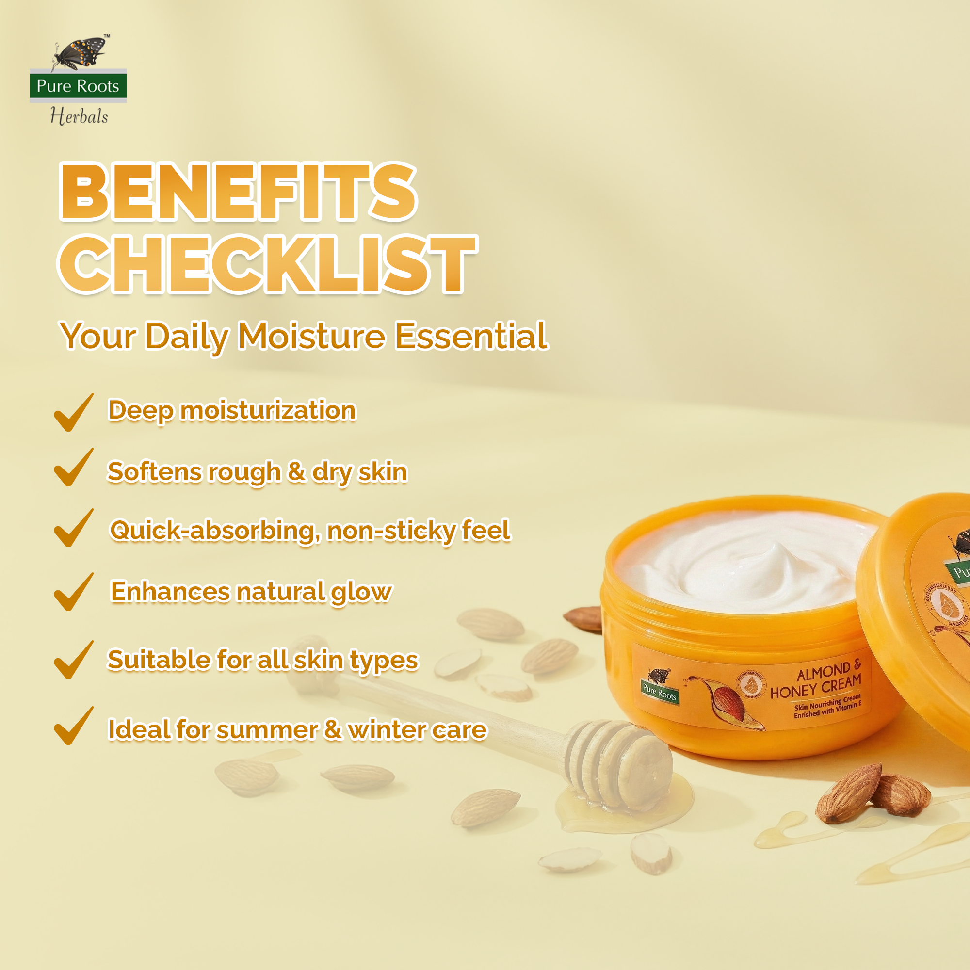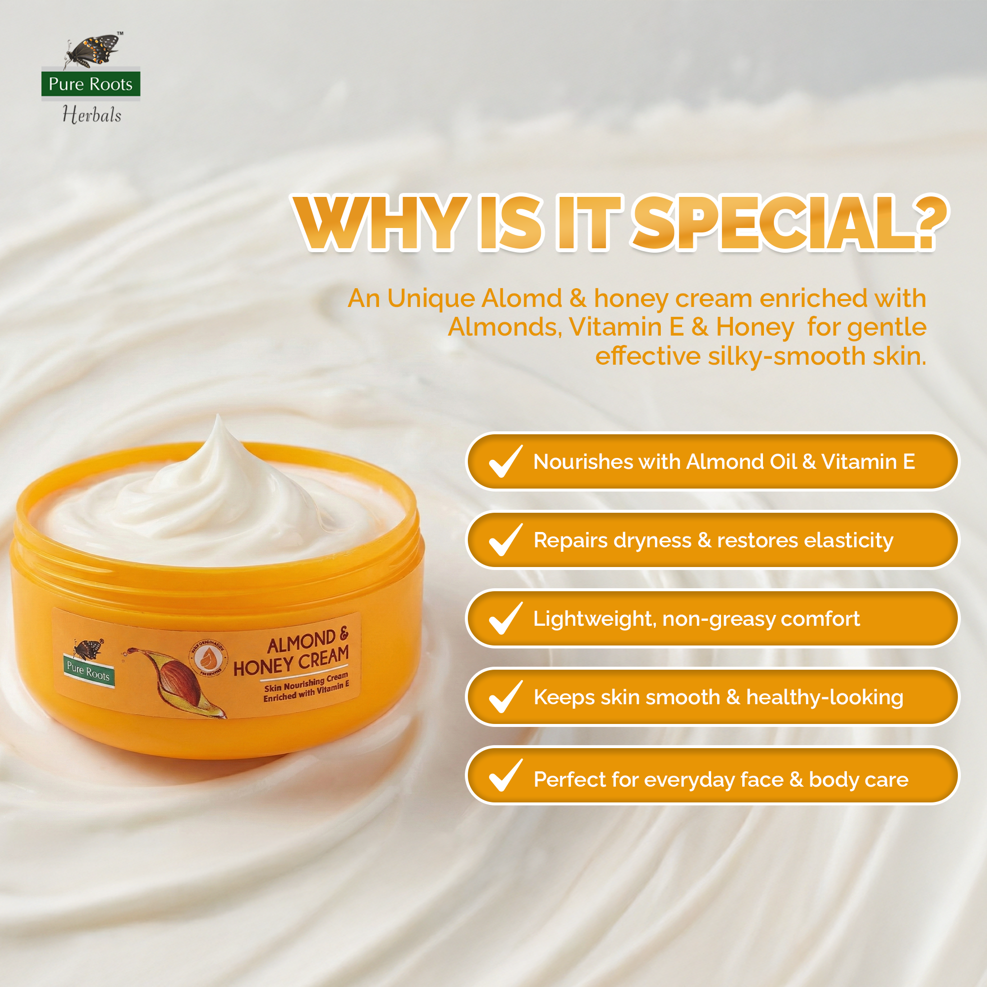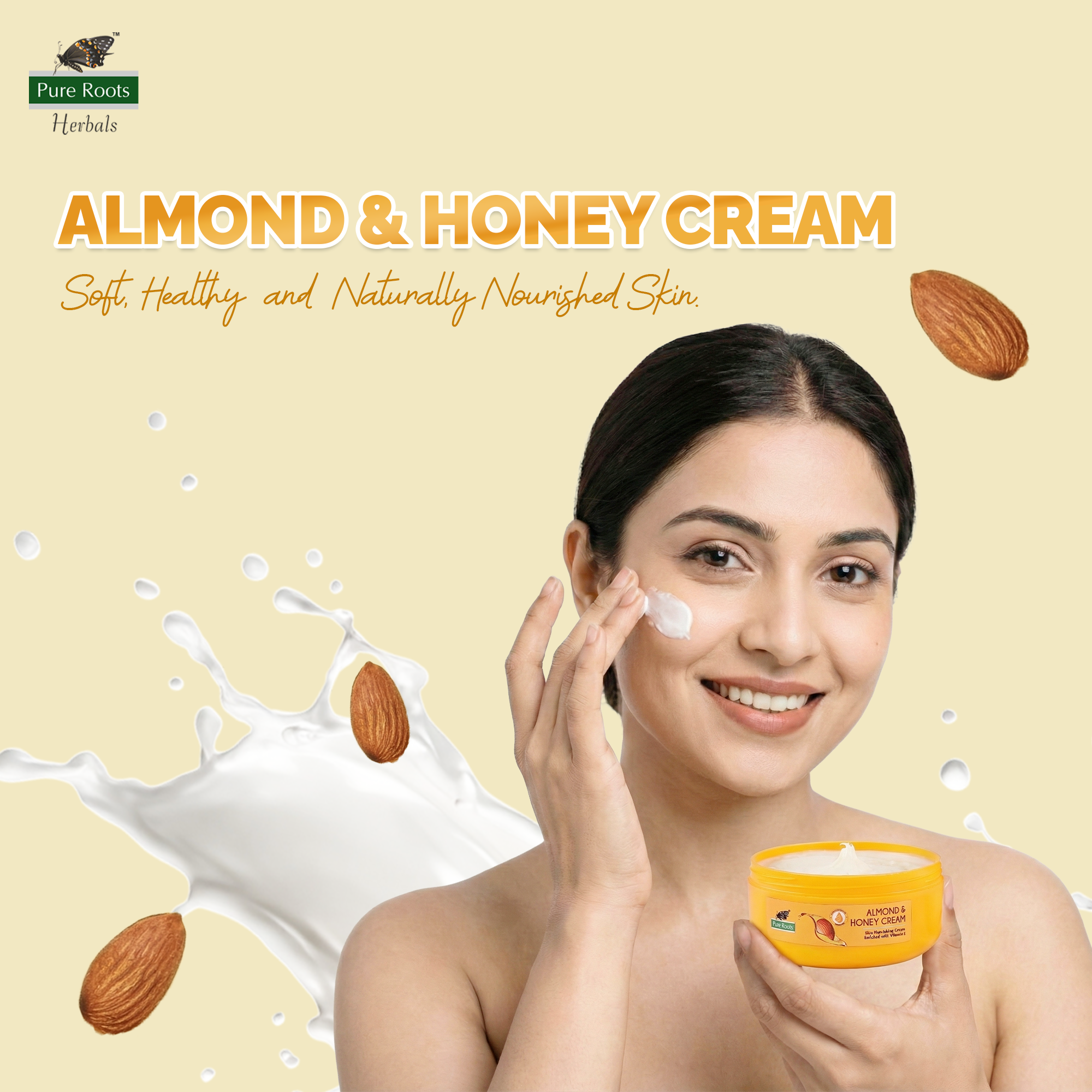 Choose Pure Roots Almond Cream for all-day hydration, lasting softness, and naturally glowing skin—every single day.